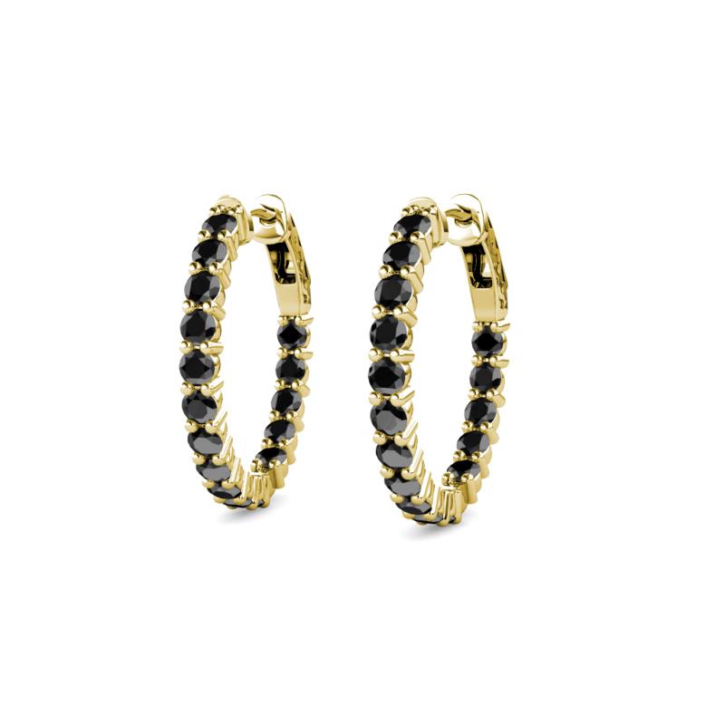 Round Black Diamond 0.67 ctw Four Prong Inside Outside Women Eternity Hoop Earrings 14K Yellow Gold More Details ...