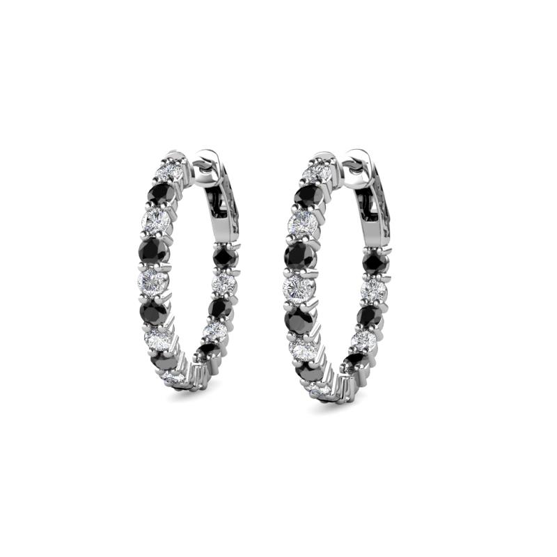 Round Black Diamond and Lab Grown Diamond 0.66 ctw Inside Outside Women Eternity Hoop Earrings 14K White Gold More Details ...
