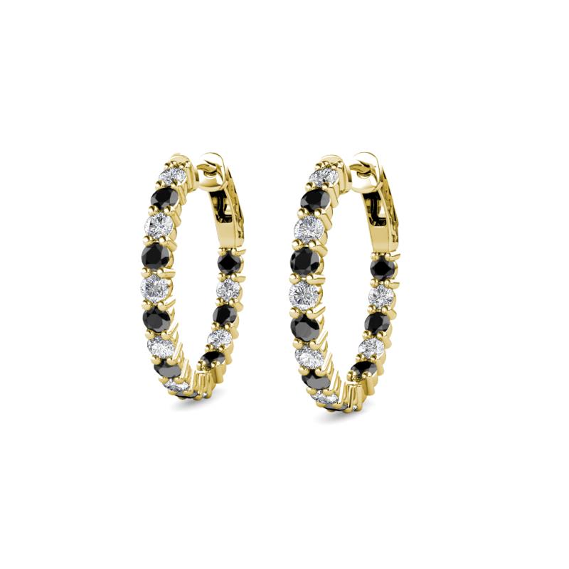Round Black Diamond and Lab Grown Diamond 0.66 ctw Inside Outside Women Eternity Hoop Earrings 14K Yellow Gold More Details ...