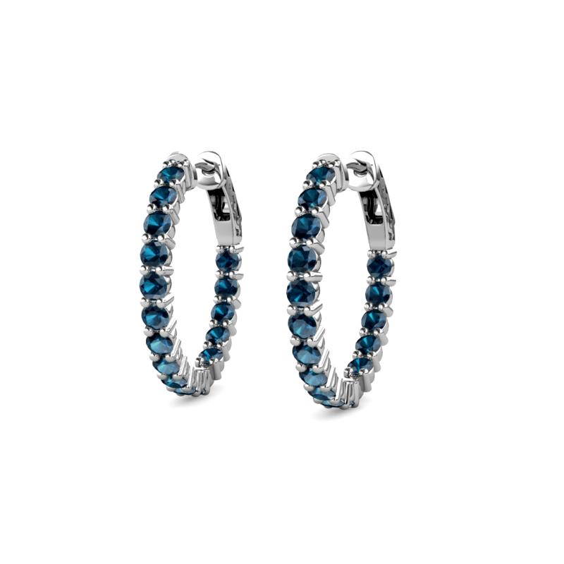 Round Blue Diamond 0.64 ctw Four Prong Inside Outside Women Eternity Hoop Earrings 14K White Gold More Details ...