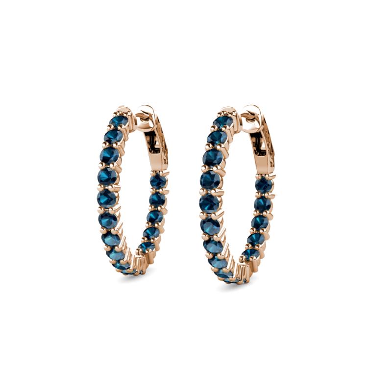 Round Blue Diamond 0.64 ctw Four Prong Inside Outside Women Eternity Hoop Earrings 14K Rose Gold More Details ...