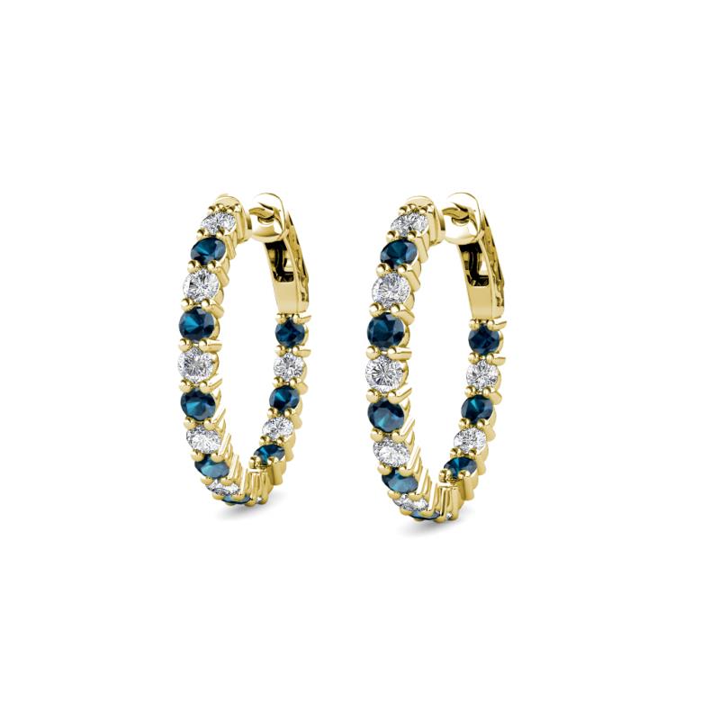 Round Blue Diamond and Lab Grown Diamond 0.64 ctw Inside Outside Women Eternity Hoop Earrings 14K Yellow Gold More Details ...