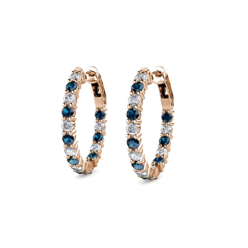 Round Blue Diamond and Lab Grown Diamond 0.64 ctw Inside Outside Women Eternity Hoop Earrings 14K Rose Gold More Details ...