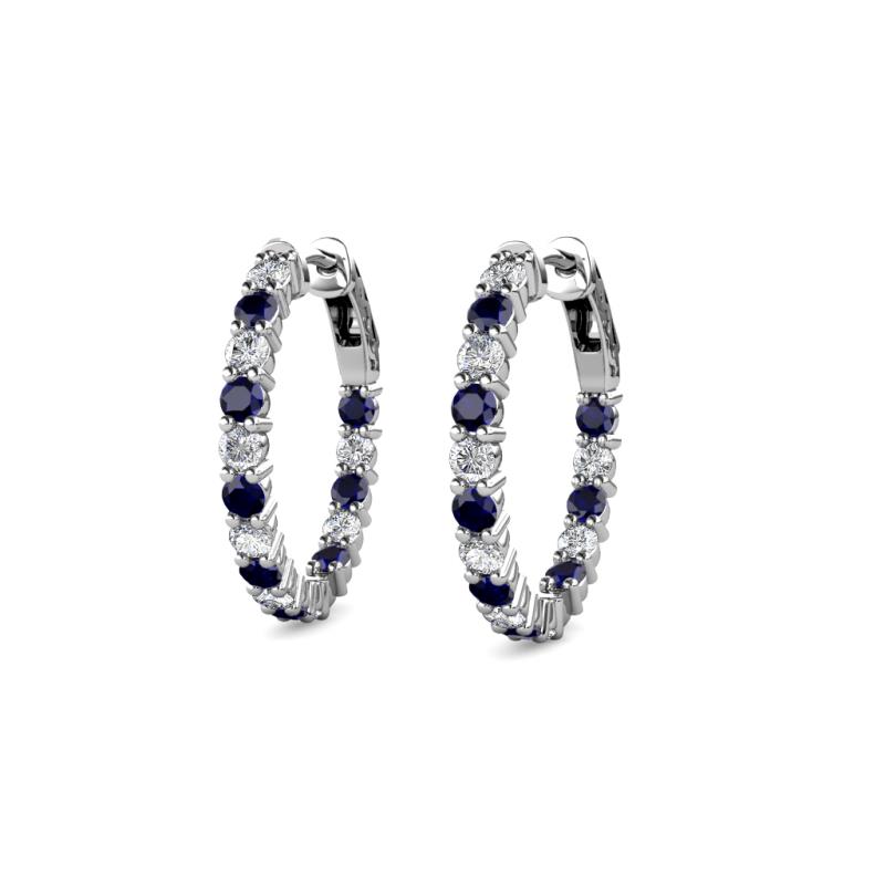 Round Blue Sapphire and Lab Grown Diamond 0.66 ctw Inside Outside Women Eternity Hoop Earrings 14K White Gold More Details ...