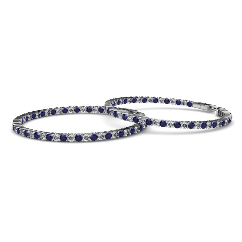 1.80 mm Round Blue Sapphire and Diamond 2 1/2 ctw Common Prong Inside-Out Womens Hoop Earrings 14K White Gold More Details ...