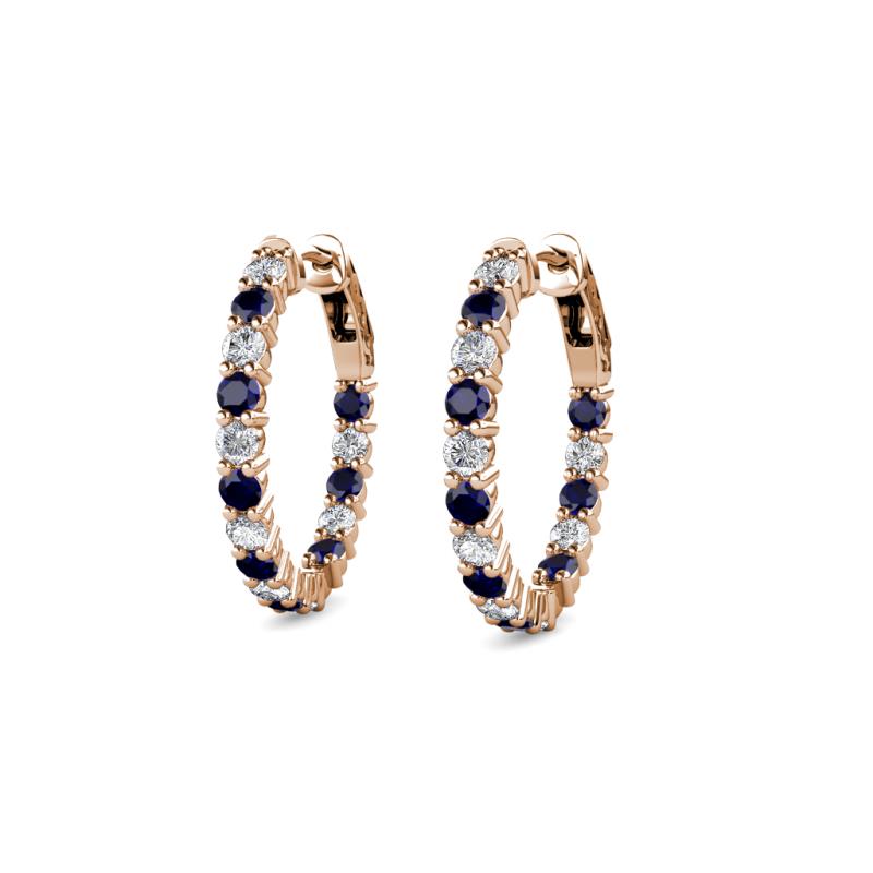 Round Blue Sapphire and Natural Diamond 0.66 ctw Inside Outside Women Eternity Hoop Earrings 14K Rose Gold More Details ...