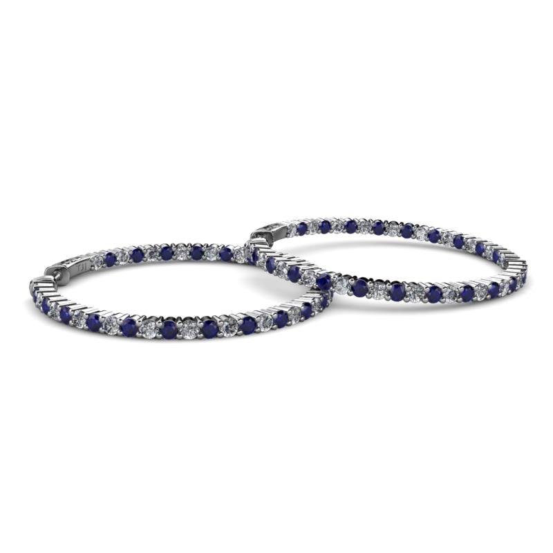 Round Blue Sapphire and Natural Diamond 6.23 ctw Common Prong Inside Outside Women Eternity Hoop Earrings 14K White Gold More Details ...