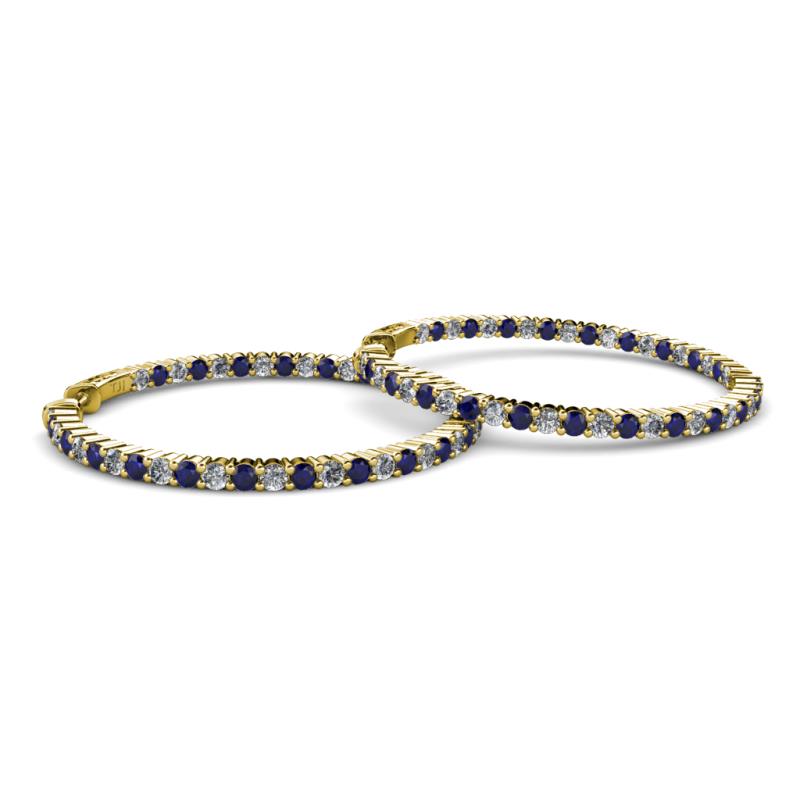 Round Blue Sapphire and Natural Diamond 6.23 ctw Common Prong Inside Outside Women Eternity Hoop Earrings 14K Yellow Gold More Details ...