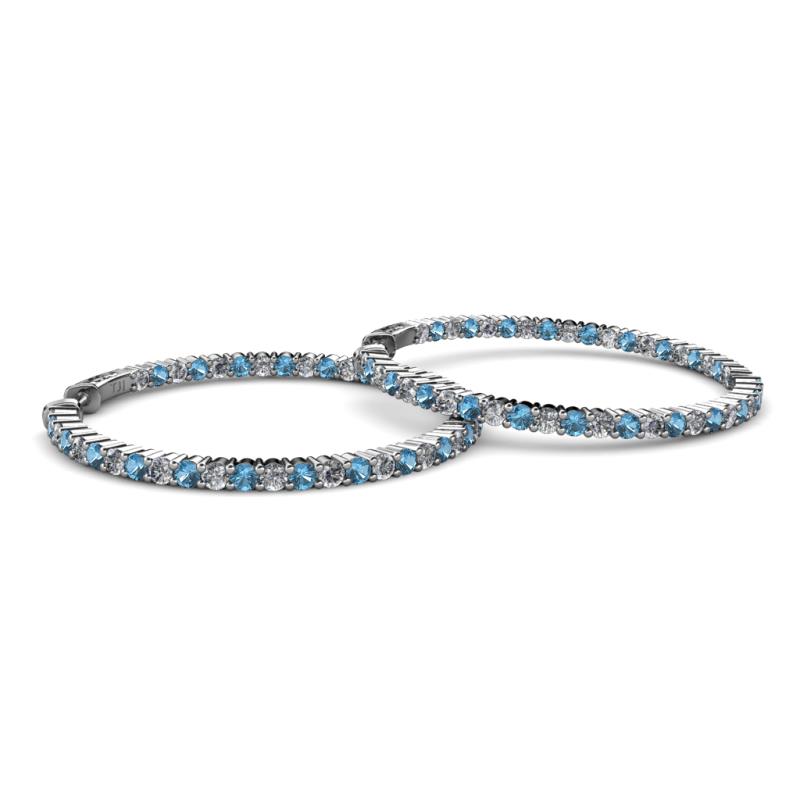 Round Blue Topaz and Natural Diamond 5.81 ctw Common Prong Inside Outside Women Eternity Hoop Earrings 14K White Gold More Details ...