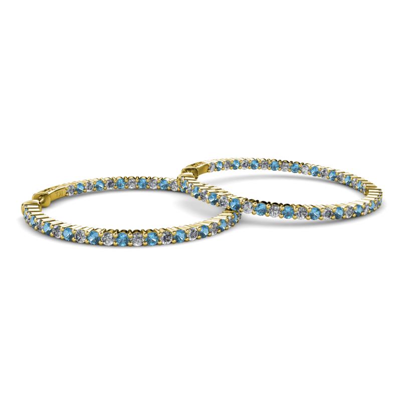 Round Blue Topaz and Natural Diamond 5.81 ctw Common Prong Inside Outside Women Eternity Hoop Earrings 14K Yellow Gold More Details ...