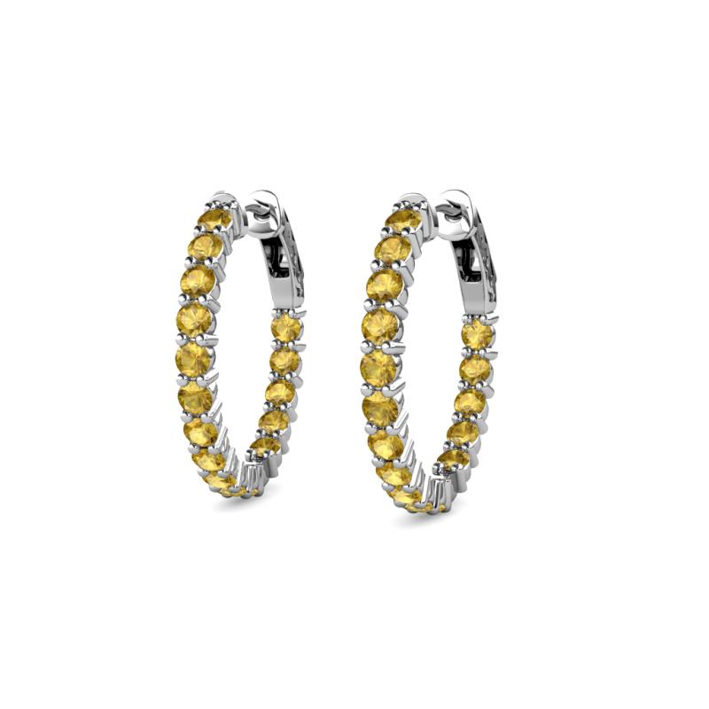 Round Citrine 0.51 ctw Four Prong Inside Outside Women Eternity Hoop Earrings 14K White Gold More Details ...