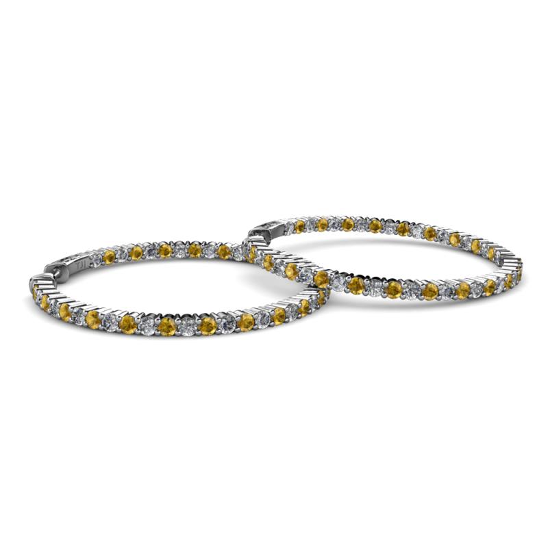 Round Citrine and Lab Grown Diamond 3.30 ctw Common Prong Inside Outside Women Eternity Hoop Earrings 14K White Gold More Details ...