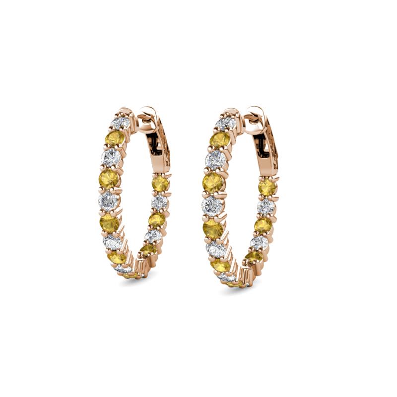 Round Citrine and Natural Diamond 0.58 ctw Inside Outside Women Eternity Hoop Earrings 14K Rose Gold More Details ...