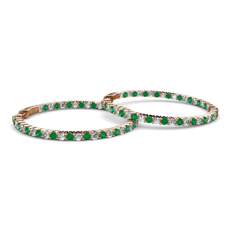 Round Emerald and Lab Grown Diamond 3.30 ctw Common Prong Inside Outside Women Eternity Hoop Earrings 14K Rose Gold More Details ...