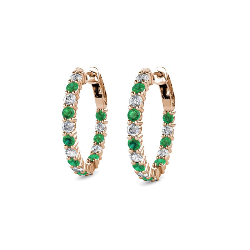 Round Emerald and Natural Diamond 0.58 ctw Inside Outside Women Eternity Hoop Earrings 14K Rose Gold More Details ...