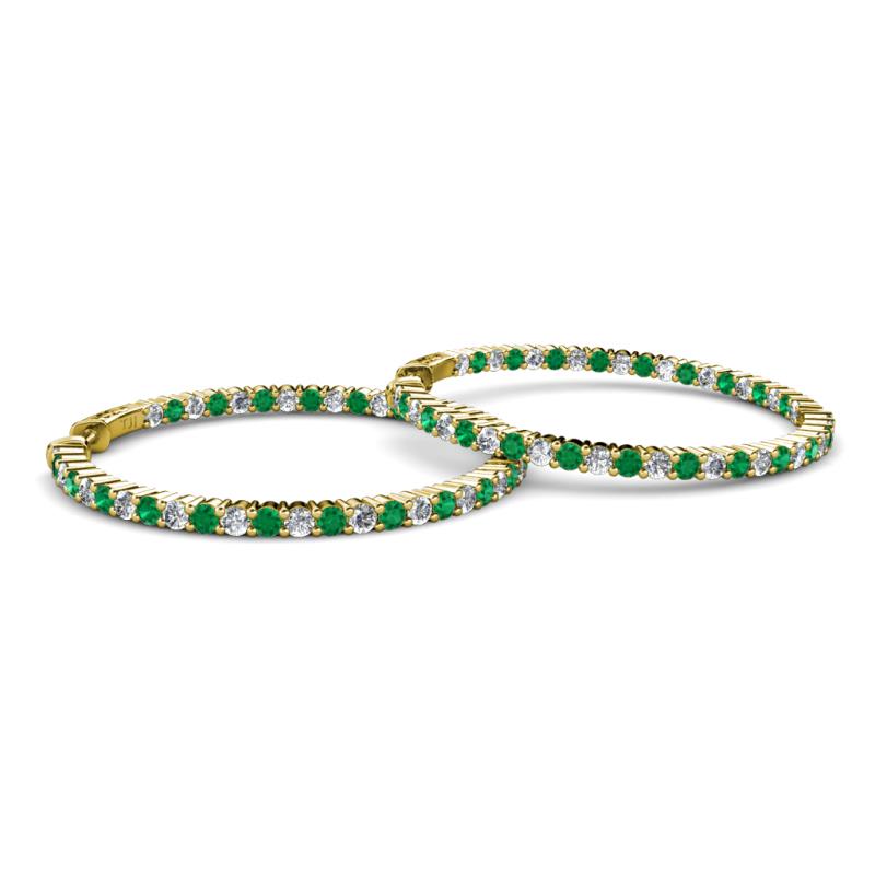 Round Emerald and Natural Diamond 5.39 ctw Common Prong Inside Outside Women Eternity Hoop Earrings 14K Yellow Gold More Details ...