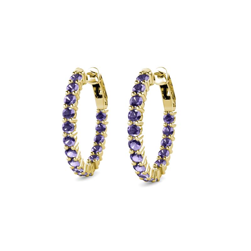 Round Iolite 0.51 ctw Four Prong Inside Outside Women Eternity Hoop Earrings 14K Yellow Gold More Details ...
