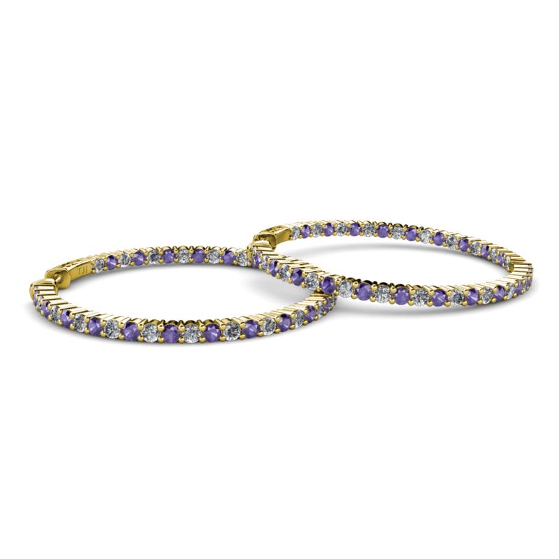 Round Iolite and Natural Diamond 5.39 ctw Common Prong Inside Outside Women Eternity Hoop Earrings 14K Yellow Gold More Details ...