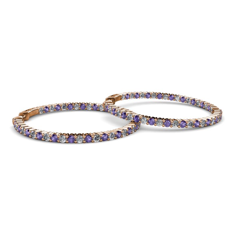 Round Iolite and Natural Diamond 5.39 ctw Common Prong Inside Outside Women Eternity Hoop Earrings 14K Rose Gold More Details ...