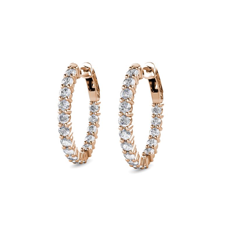 Round Lab Grown Diamond 0.64 ctw Four Prong Inside Outside Women Eternity Hoop Earrings 14K Rose Gold More Details ...