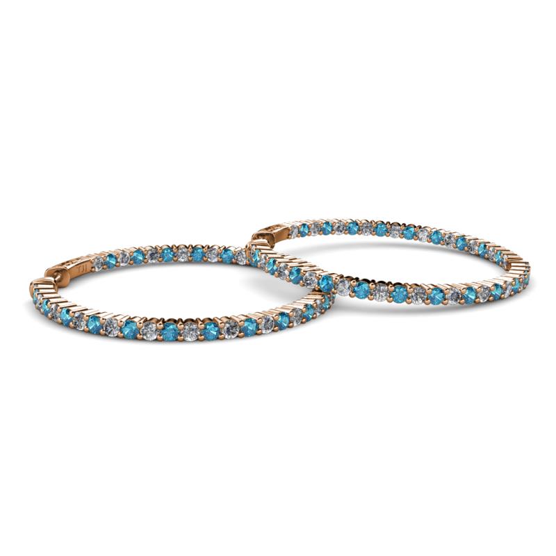 Round London Blue Topaz and Natural Diamond 6.02 ctw Common Prong Inside Outside Women Eternity Hoop Earrings 14K Rose Gold More Details ...