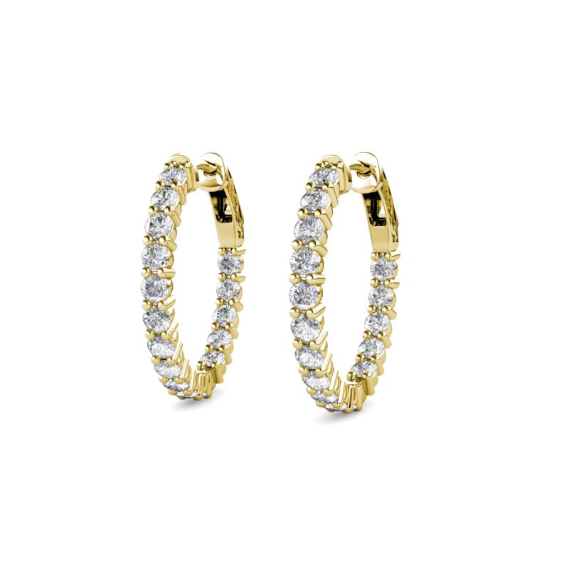 Round Natural Diamond 0.64 ctw Four Prong Inside Outside Women Eternity Hoop Earrings 14K Yellow Gold More Details ...