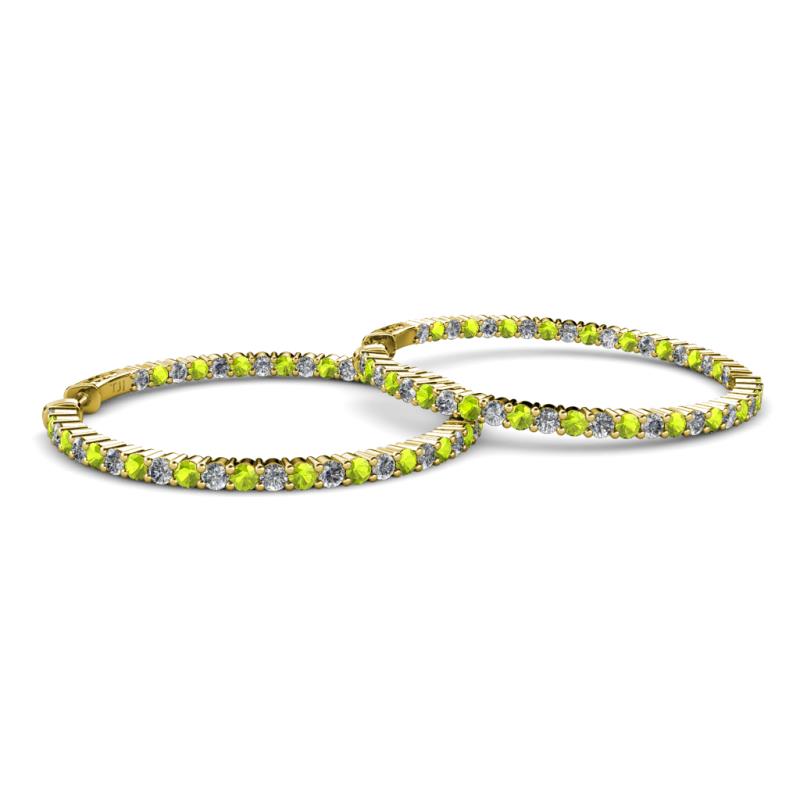Round Peridot and Natural Diamond 6.61 ctw Common Prong Inside Outside Women Eternity Hoop Earrings 14K Yellow Gold More Details ...