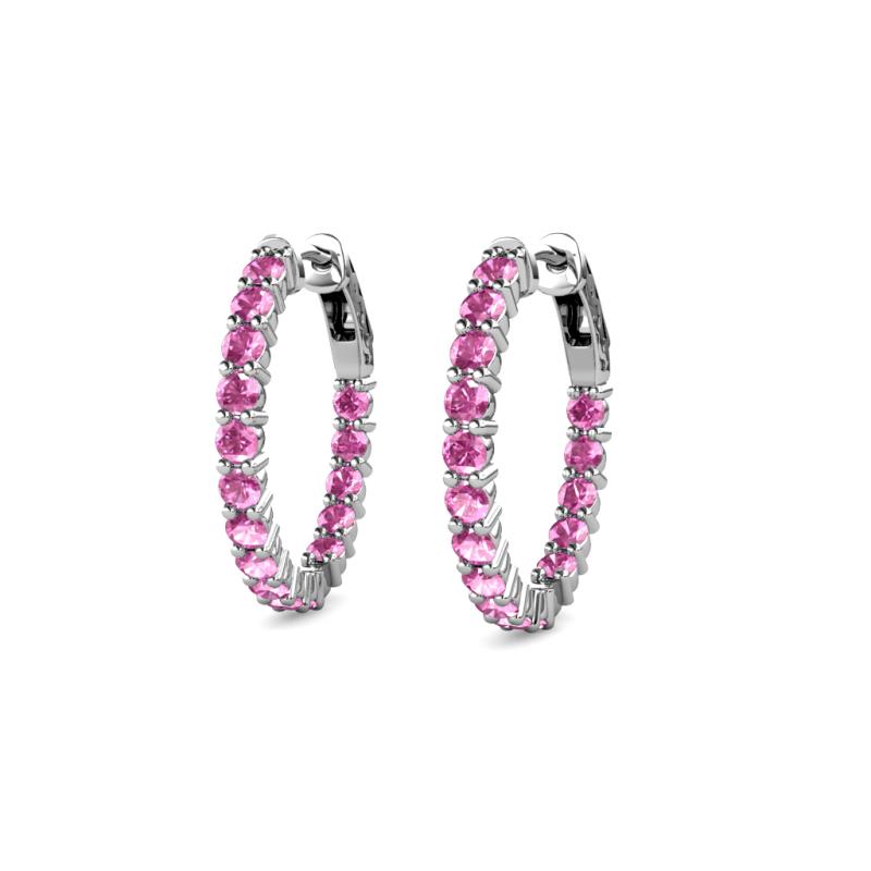 Round Pink Sapphire 0.67 ctw Four Prong Inside Outside Women Eternity Hoop Earrings 14K White Gold More Details ...