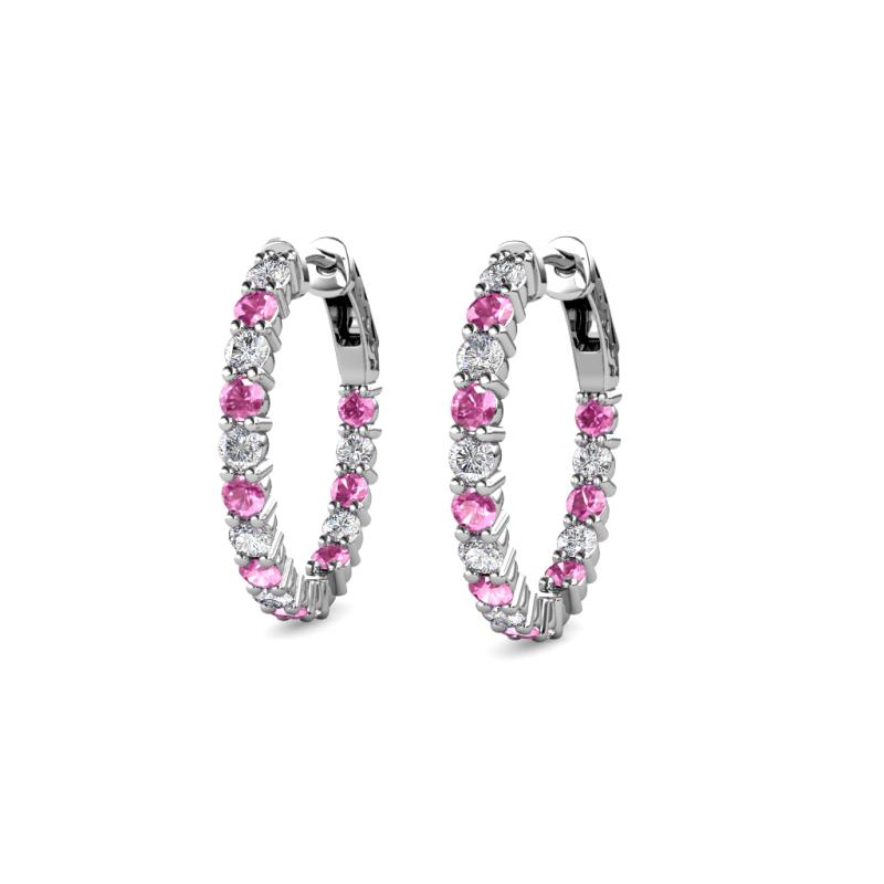 Round Pink Sapphire and Natural Diamond 0.66 ctw Inside Outside Women Eternity Hoop Earrings 14K White Gold More Details ...