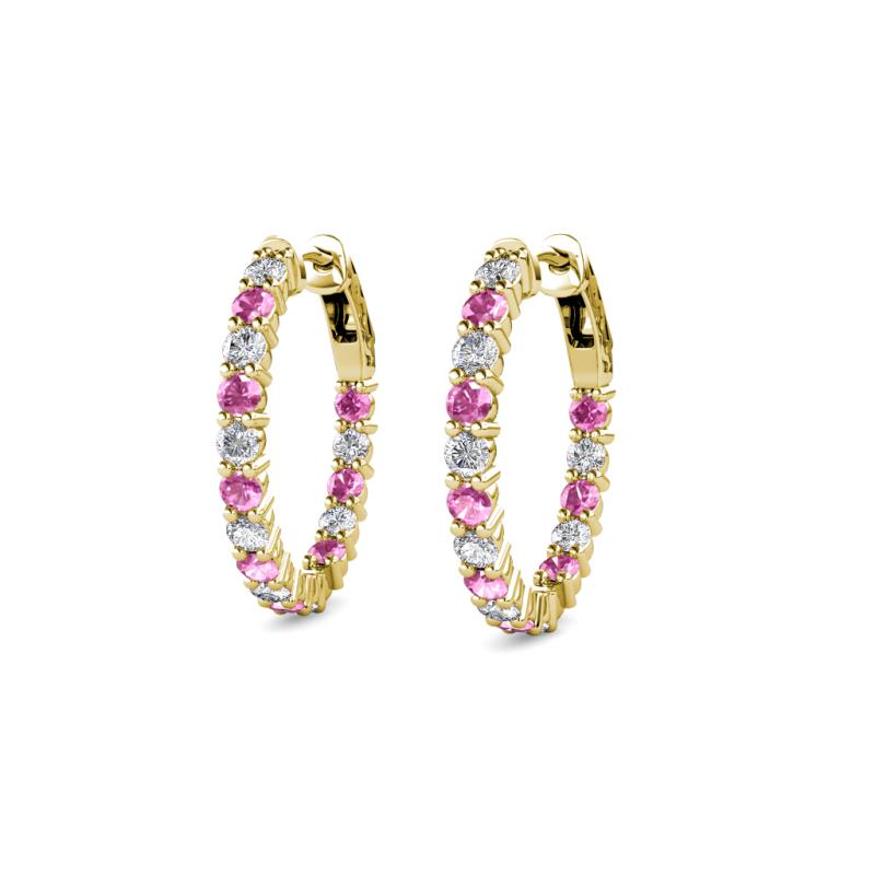 Round Pink Sapphire and Natural Diamond 0.66 ctw Inside Outside Women Eternity Hoop Earrings 14K Yellow Gold More Details ...