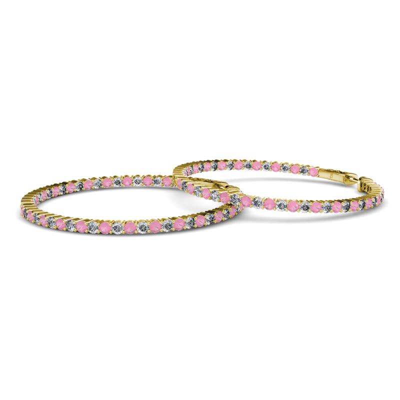 1.80 mm Round Pink Tourmaline and Diamond 2 1/10 ctw Common Prong Inside-Out Womens Hoop Earrings 14K Yellow Gold More Details ...