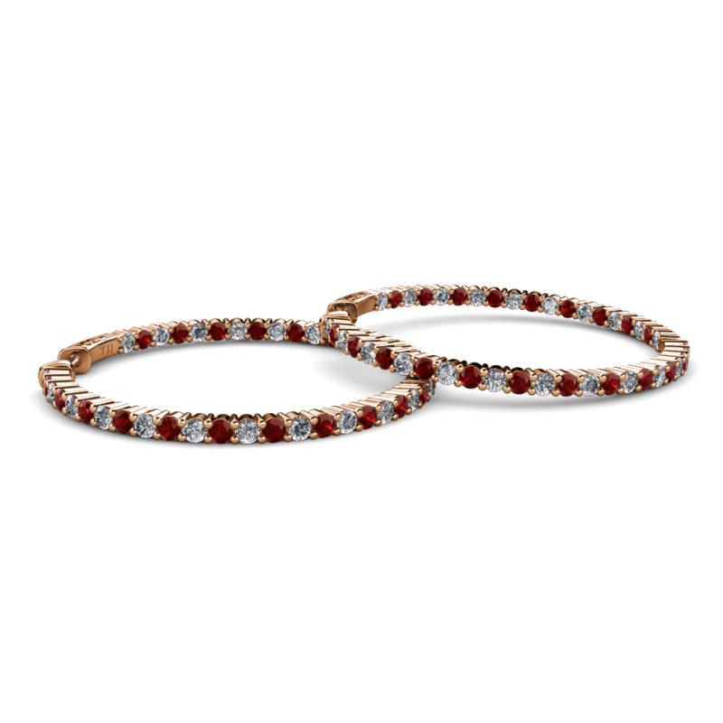 Round Red Garnet and Lab Grown Diamond 3.30 ctw Common Prong Inside Outside Women Eternity Hoop Earrings 14K Rose Gold More Details ...