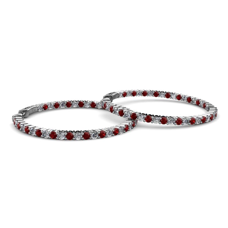 Round Red Garnet and Natural Diamond 6.61 ctw Common Prong Inside Outside Women Eternity Hoop Earrings 14K White Gold More Details ...