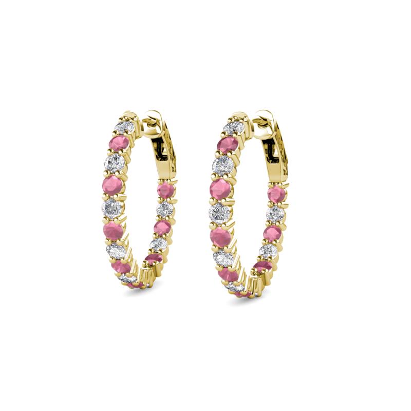 Round Rhodolite Garnet and Lab Grown Diamond 0.66 ctw Inside Outside Women Eternity Hoop Earrings 14K Yellow Gold More Details ...