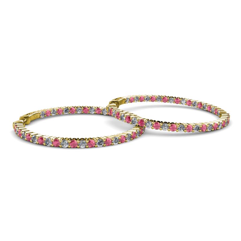 Round Rhodolite Garnet and Natural Diamond 6.61 ctw Common Prong Inside Outside Women Eternity Hoop Earrings 14K Yellow Gold More Details ...