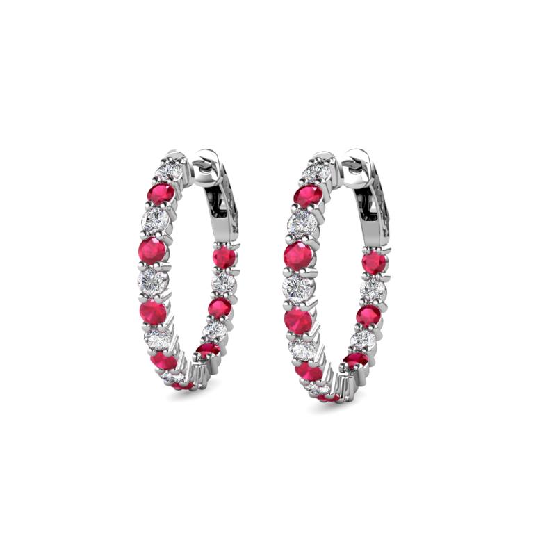Round Ruby and Lab Grown Diamond 0.66 ctw Inside Outside Women Eternity Hoop Earrings 14K White Gold More Details ...
