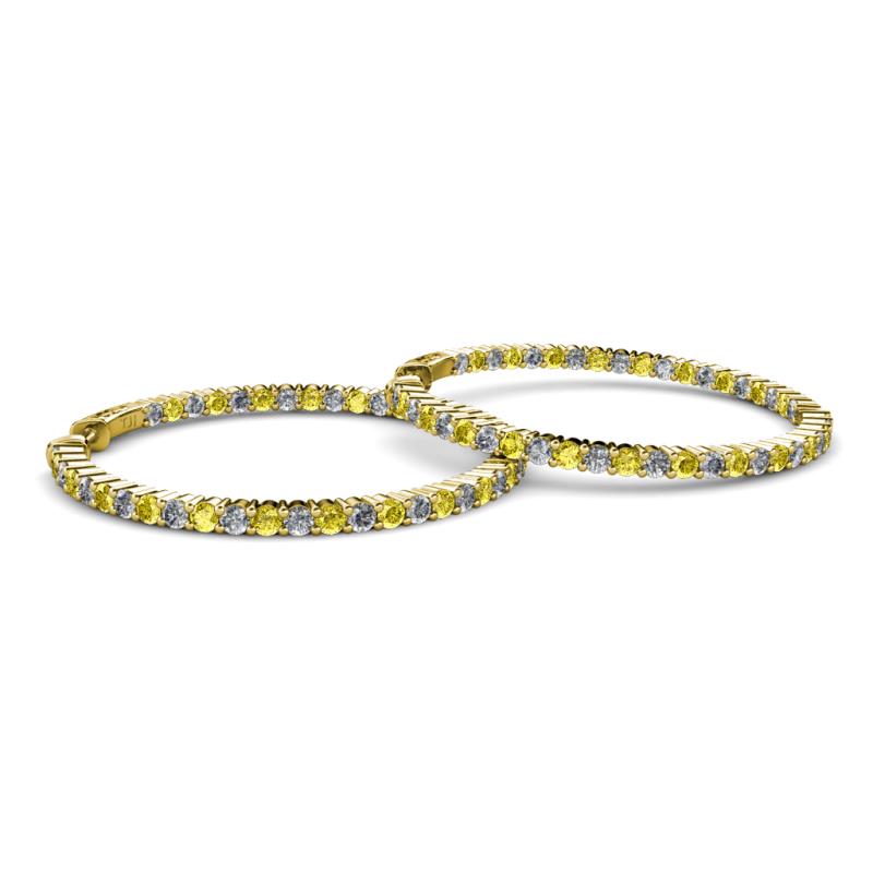 Round Yellow Sapphire and Natural Diamond 6.23 ctw Common Prong Inside Outside Women Eternity Hoop Earrings 14K Yellow Gold More Details ...
