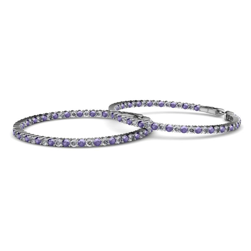 1.80 mm Round Iolite and Diamond 2 1/10 ctw Common Prong Inside-Out Womens Hoop Earrings 14K White Gold More Details ...