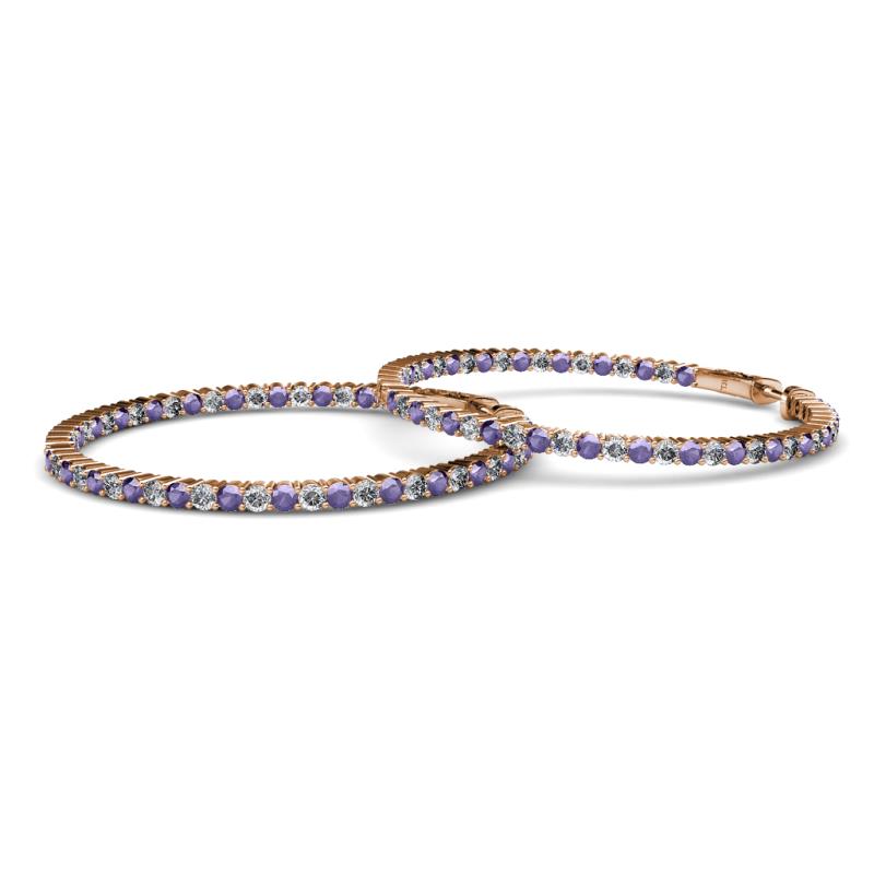 1.80 mm Round Iolite and Lab Grown Diamond 2 1/10 ctw Common Prong Inside-Out Womens Hoop Earrings 14K Rose Gold More Details ...