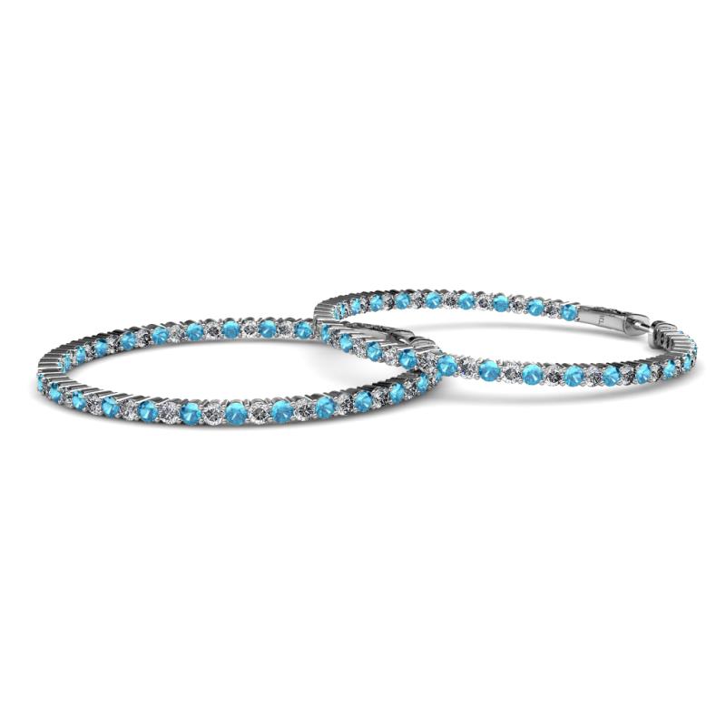 1.80 mm Round London Blue Topaz and Diamond 2 1/4 ctw Common Prong Inside-Out Womens Hoop Earrings 14K White Gold More Details ...