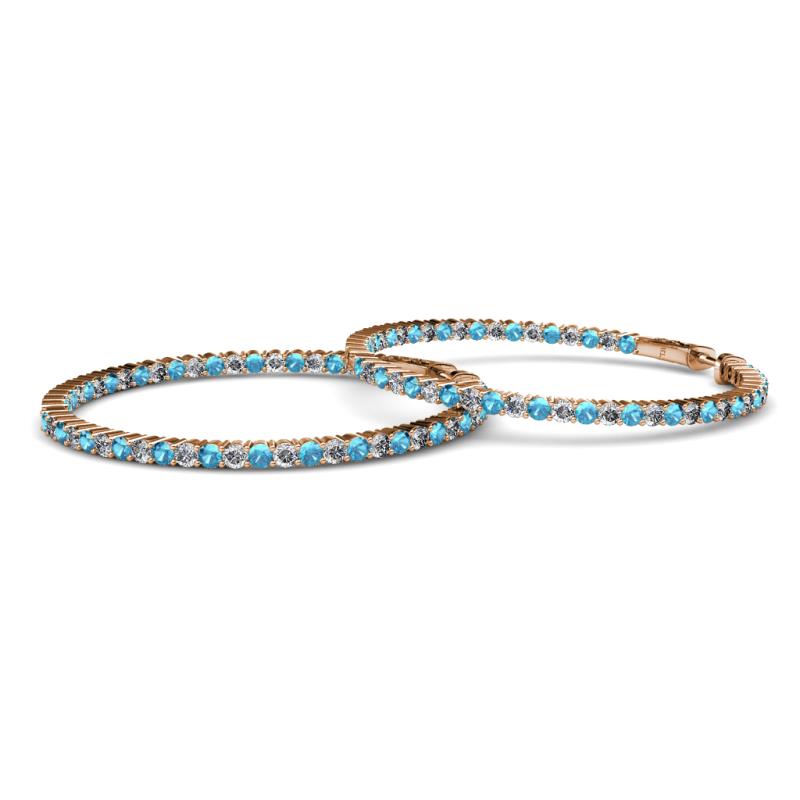 1.80 mm Round London Blue Topaz and Diamond 2 1/4 ctw Common Prong Inside-Out Womens Hoop Earrings 14K Rose Gold More Details ...