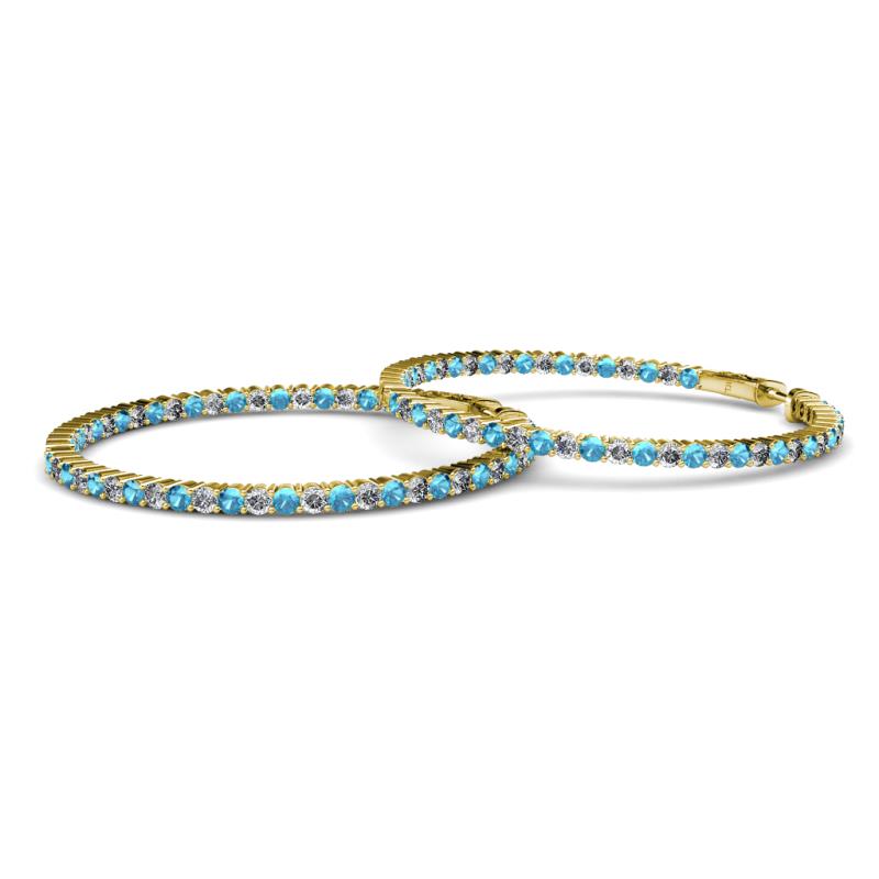 1.80 mm Round London Blue Topaz and Lab Grown Diamond 2 1/4 ctw Common Prong Inside-Out Womens Hoop Earrings 14K Yellow Gold More Details ...