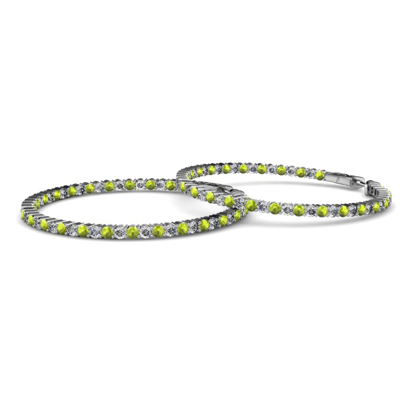 1.80 mm Round Peridot and Lab Grown Diamond 2 1/2 ctw Common Prong Inside-Out Womens Hoop Earrings 14K White Gold More Details ...