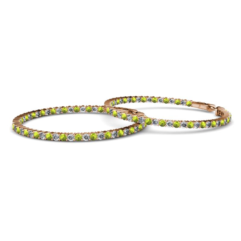 1.80 mm Round Peridot and Lab Grown Diamond 2 1/2 ctw Common Prong Inside-Out Womens Hoop Earrings 14K Rose Gold More Details ...