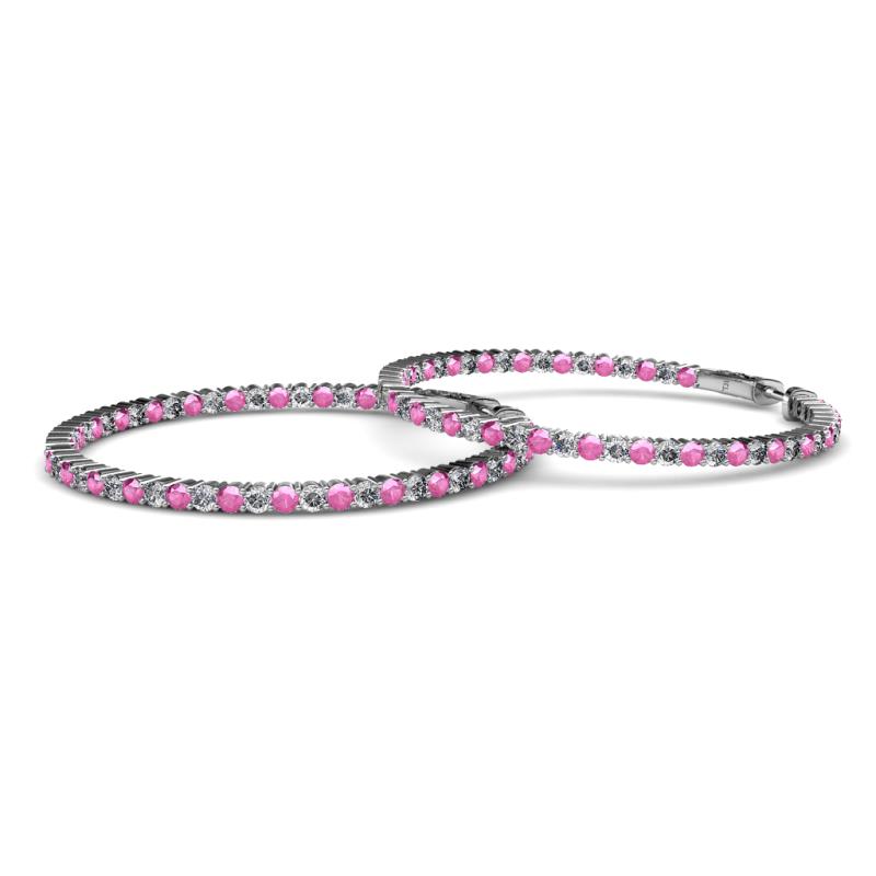 1.80 mm Round Pink Sapphire and Diamond 2 1/2 ctw Common Prong Inside-Out Womens Hoop Earrings 14K White Gold More Details ...