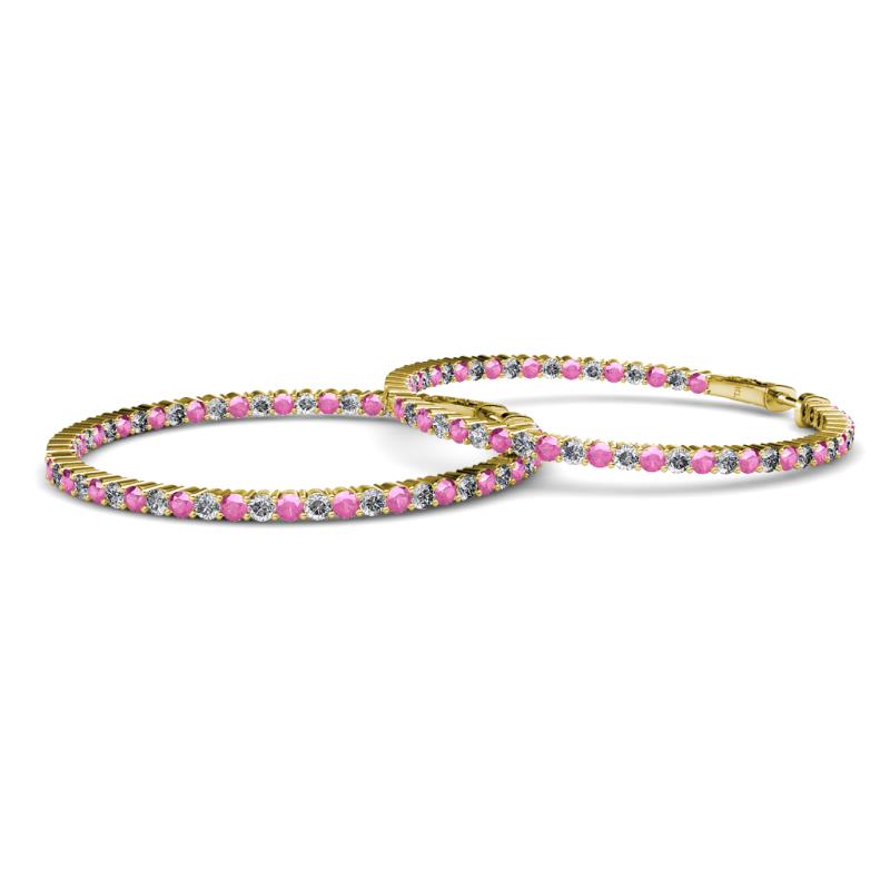 1.80 mm Round Pink Sapphire and Diamond 2 1/2 ctw Common Prong Inside-Out Womens Hoop Earrings 14K Yellow Gold More Details ...