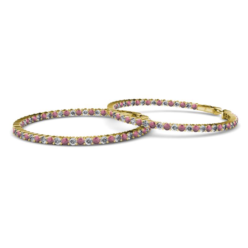 1.80 mm Round Rhodolite Garnet and Diamond 2 1/2 ctw Common Prong Inside-Out Womens Hoop Earrings 14K Yellow Gold More Details ...