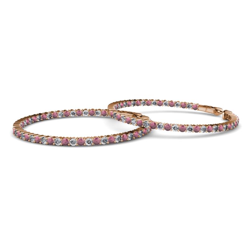1.80 mm Round Rhodolite Garnet and Lab Grown Diamond 2 1/2 ctw Common Prong Inside-Out Womens Hoop Earrings 14K Rose Gold More Details ...
