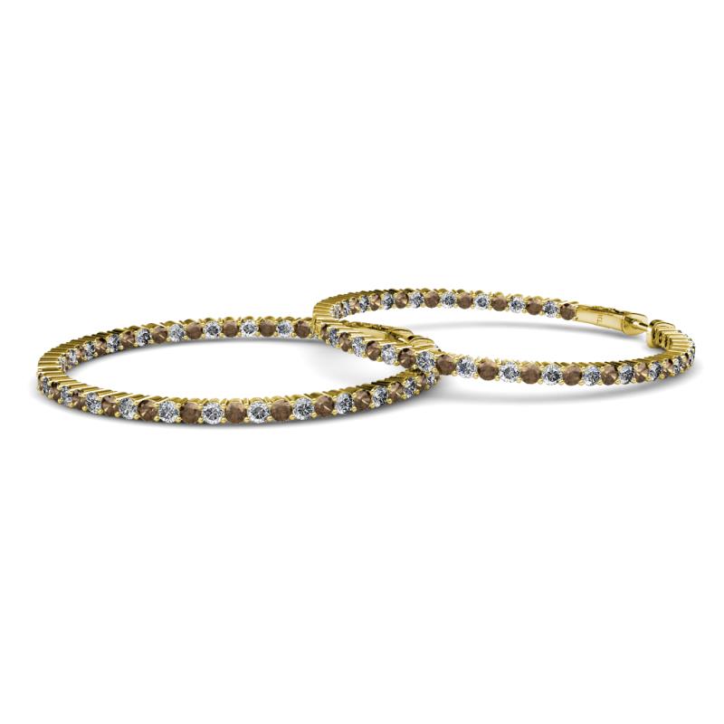1.80 mm Round Smoky Quartz and Diamond 2 1/2 ctw Common Prong Inside-Out Womens Hoop Earrings 14K Yellow Gold More Details ...