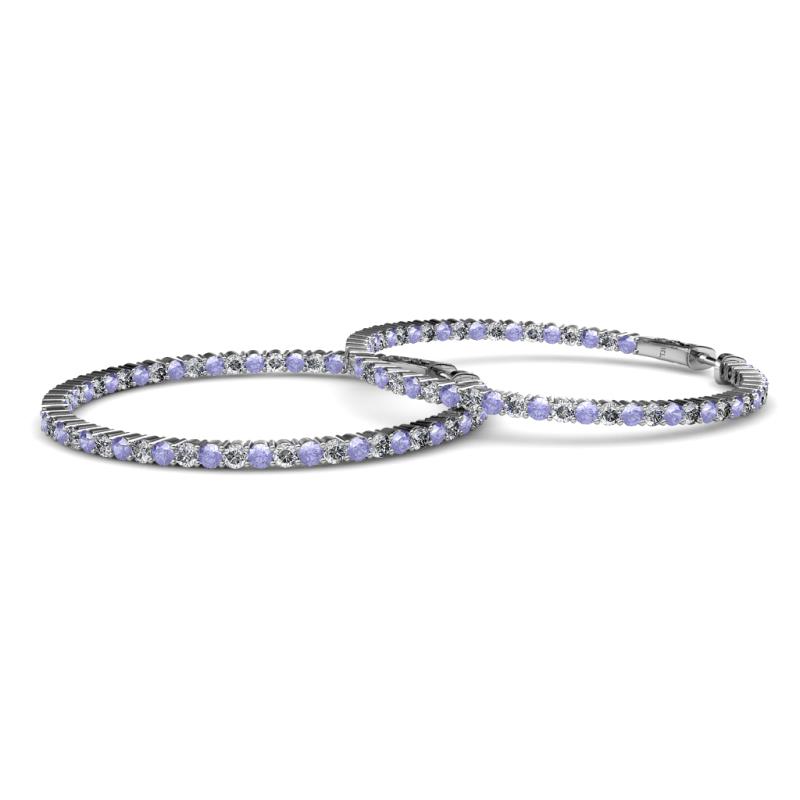 1.80 mm Round Tanzanite and Diamond 2 1/2 ctw Common Prong Inside-Out Womens Hoop Earrings 14K White Gold More Details ...